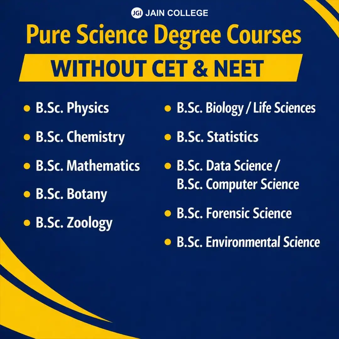 Students who successfully pass or clear their CET or NEET examinations can pursue structured professional courses, while those without appearing for these entrance exams can still build strong careers through pure science degree courses.