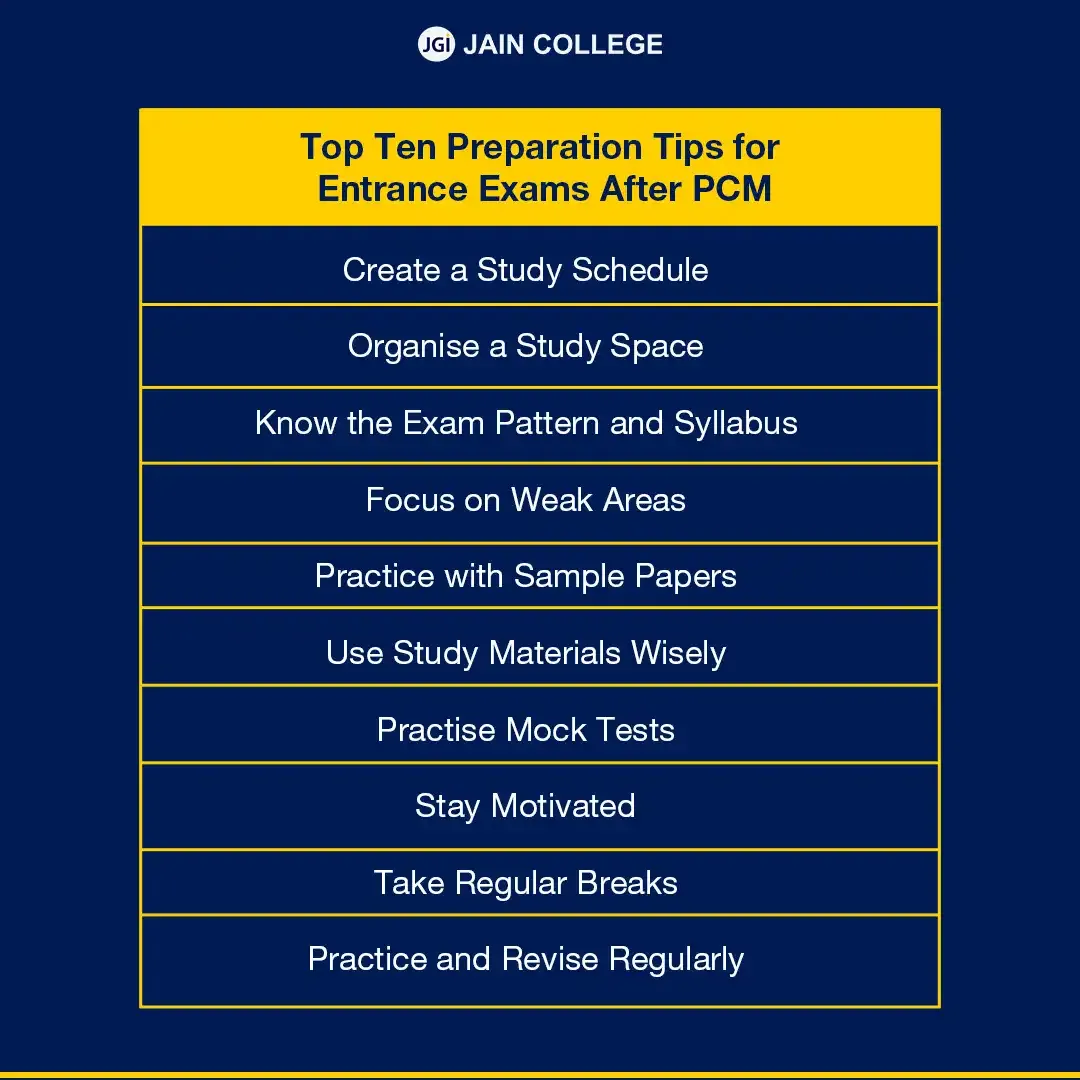 Preparing for an entrance exam after PCM requires students to follow a structured approach, such as: