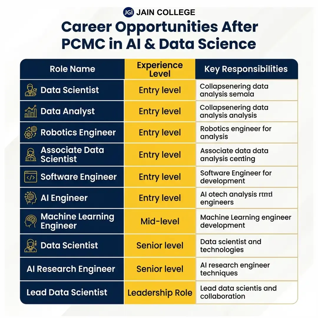 PCMC provides an excellent academic base for artificial intelligence pathways. Careers such as an AI ML engineer require strong mathematical reasoning, programming knowledge, and data interpretation. The PCMC introduces the fundamentals, enabling students to pursue advanced learning and industry roles as technologies evolve.