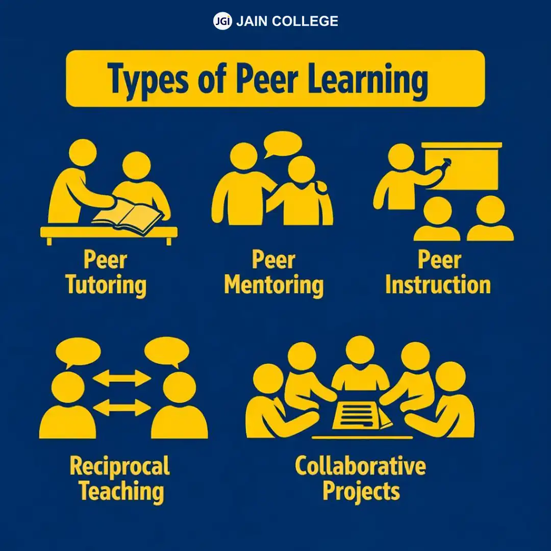 Peer learning, also known as peer-to-peer learning, is a method in which students learn collaboratively by sharing ideas, explanations, and problem-solving strategies. This approach improves understanding and knowledge retention by enabling students to leverage: