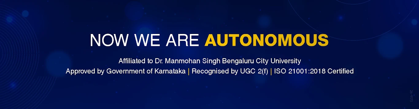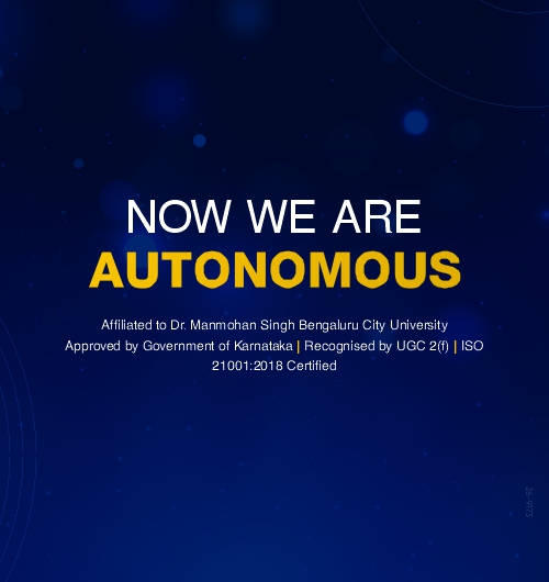 We believe that education is the key to self-improvement and reaching new heights with a focus on righteous thinking. With our programmes, one can step into the world of excellence as it offers students a variety of options to choose from, including Bachelor of Commerce, Bachelor of Business Administration (BBA), BBA in Aviation Management, and Bachelor of Computer Application at the undergraduate level and specialisations in Commerce and Economics at the postgraduate level. We are proud to have successfully implemented the National Education Policy 2020 and the guidelines set forth by the Karnataka Higher Education Council and Bengaluru City University.